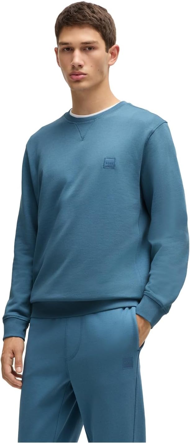 Questa felpa senza cappuccio si distingue per il suo taglio rilassato che garantisce massima libertà di movimento. I polsini a costine assicurano una vestibilità perfetta, mentre la toppa con logo BOSS sul petto aggiunge un tocco di autenticità e stile.