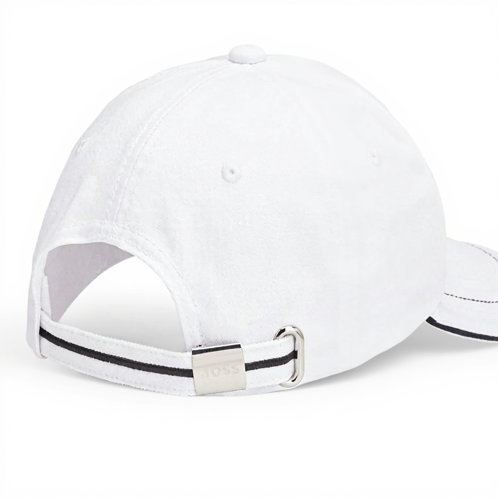 Il cappellino è disponibile in nero e bianco, entrambi con il logo Hugo Boss ricamato.